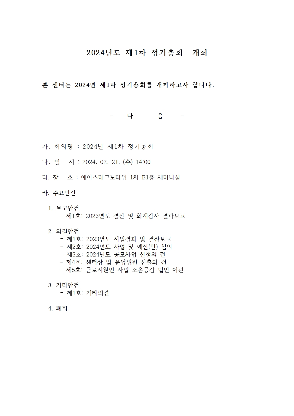 2024³â Á¦1ȸ Á¤±âÃÑȸ °³ÃÖ(¼öÁ¤)