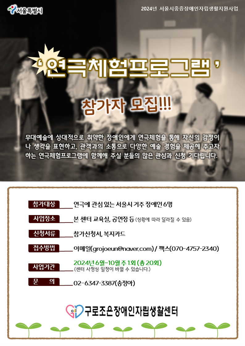 Á¦¸ñ 2024³â ¿¬±ØÃ¼ÇèÇÁ·Î±×·¥ Âü°¡ÀÚ ¸ðÁý ¾È³» ÀÛ¼ºÀÏÀÚ 2024-02-19 ¹«´ë¿¹¼ú¿¡ »ó´ëÀûÀ¸·Î Ãë¾àÇÑ Àå¾ÖÀο¡°Ô ¿¬±ØÃ¼ÇèÀ» ÅëÇØ ÀÚ½ÅÀÇ °¨Á¤À̳ª »ý°¢À» Ç¥ÇöÇϰí, °ü°´°úÀÇ ¼ÒÅëÀ¸·Î ´Ù¾çÇÑ ¿¹¼ú °æÇèÀ» Á¦°øÇØ ÁÖ°íÀÚ ÇÏ´Â ¿¬±ØÃ¼ÇèÇÁ·Î±×·¥¿¡ ÇÔ²²ÇØ ÁÖ½Ç ºÐµéÀÇ ¸¹Àº °ü½É°ú ½Åû ±â´Ù¸³´Ï´Ù. ÷ºÎÆÄÀÏ 2024³â ¿¬±ØÃ¼ÇèÇÁ·Î±×·¥ Âü°¡½Åû¼.hwp