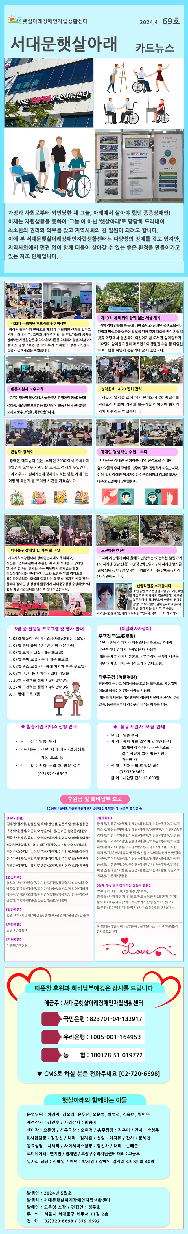 ¼´ë¹®ÇÞ»ì¾Æ·¡Àå¾ÖÀÎÀÚ¸³»ýȰ¼¾ÅÍ(ÀÌÇÏ ÇÞ»ì¾Æ·¡, ¼¾ÅÍÀå ¿À¹®¿µ)´Â ÀÚ¸³»ýȰ(Independent Living)ÀÇ À̳信 µû¶ó Àå¾ÖÀÎ ´ç»çÀÚ°¡ ¿î¿µÇÏ´À Àå¾ÖÀαÇÀÍ¿ËÈ£´Üü·Î¼ Àü Àå¾Ö¿µ¿ªÀ» ´ë»óÀ¸·Î ¼ÒºñÀÚ Áß½ÉÀÇ ¼ºñ½º¸¦ Á¦°øÇϰí, Àå¾ÖÀÎÀÌ ÀÚ¸³»ýȰÇϱâ ÁÁÀº ȯ°æÀ» Á¶¼ºÇϸç, ¾Æ¿ï·¯ ¿ÏÀüÇÑ »çȸÂü¿©¿Í ÅëÇÕÀ» °¡´ÉÇϵµ·Ï ³ë·ÂÇÏ´Â ºñ¿µ¸® ¹Î°£´ÜüÀÔ´Ï´Ù.