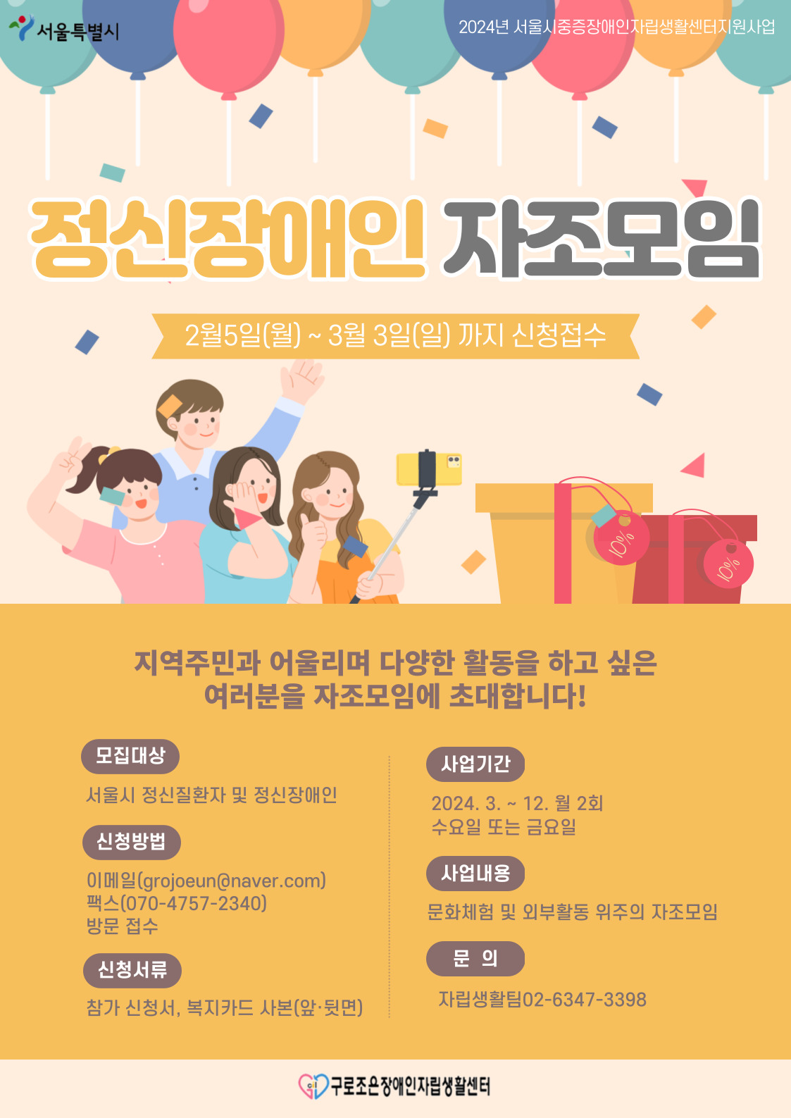 Á¦¸ñ 2024³â Á¤½ÅÀå¾ÖÀÎ ÀÚÁ¶¸ðÀÓ Âü°¡ÀÚ ¸ðÁý ¾È³» ÀÛ¼ºÀÏÀÚ 2024-02-07 Á¤½ÅÀå¾ÖÀÎ ÀÚÁ¶¸ðÀÓ Âü°¡ÀÚ¸¦ ¸ðÁýÇÏ¿À´Ï ¸¹Àº °ü½É°ú Âü¿© ºÎʵ右´Ï´Ù. ÷ºÎÆÄÀÏ Á¤½ÅÀå¾ÖÀÎ ÀÚÁ¶¸ðÀÓ Âü°¡½Åû¼.hwp