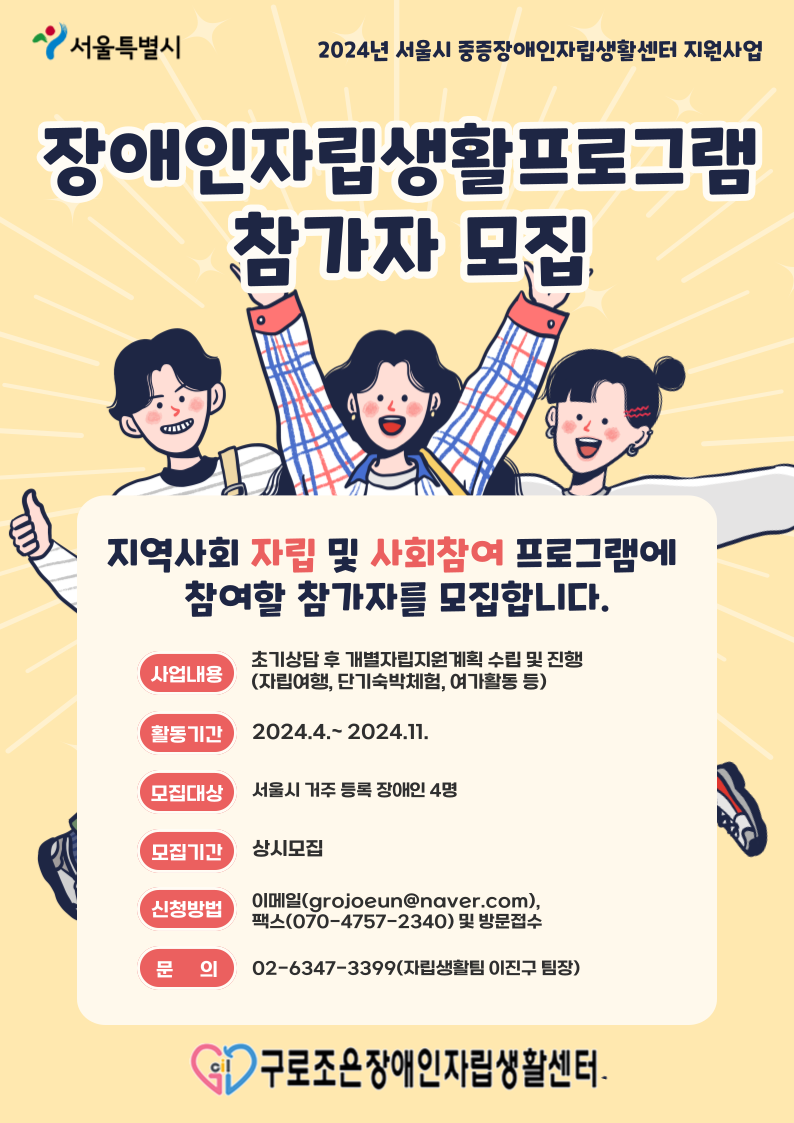 Á¦¸ñ 2024³âµµ Àå¾ÖÀÎÀÚ¸³»ýȰÁö¿ø ÇÁ·Î±×·¥ Âü°¡ÀÚ ¸ðÁý ÀÛ¼ºÀÏÀÚ 2024-04-01 Àå¾ÖÀÎÀÚ¸³»ýȰÁö¿ø ÇÁ·Î±×·¥ Âü°¡ÀÚ¸¦ ¸ðÁýÇÏ¿À´Ï °ü½É°ú Âü¿© ºÎʵ右´Ï´Ù. ÷ºÎÆÄÀÏ 2)Àå¾ÖÀÎÀÚ¸³»ýȰÁö¿ø ÇÁ·Î±×·¥ Âü°¡½Åû¼.hwp